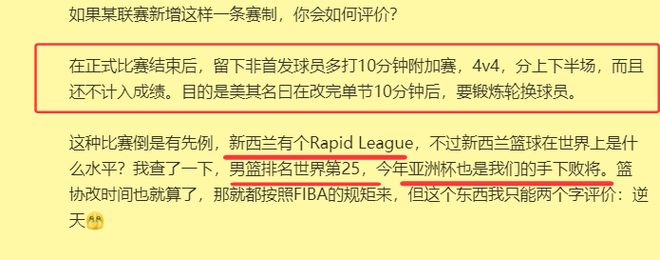 當然,CBA這種五節比賽的新玩法,其實也是有先例的,只不過之前并沒有在CBA聯賽出現過,但是在新西蘭籃球聯賽已經進行了兩年時間。