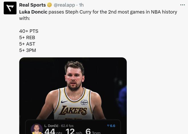 其中傷愈復出的東契奇無疑是本場比賽湖人隊贏球的最大功臣,又一次轟下40+得分表現成功打破NBA一項塵封了62年之久的紀錄。