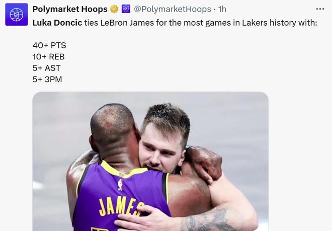 同時追平詹姆斯成為湖人隊史單場至少拿到40分10籃板5助攻5三分場次最多的球員,并且按照東契奇的火熱狀態,他很快就將反超詹姆斯獨占這一紀錄,畢竟他上個賽季才加入湖人。