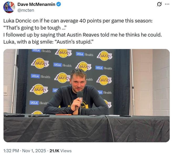 面對這一有趣話題,賽后東契奇也給出回應,東契奇笑著說道場均40分很難達到,但對手越是包夾我,我就越是想要去拿下分數。
