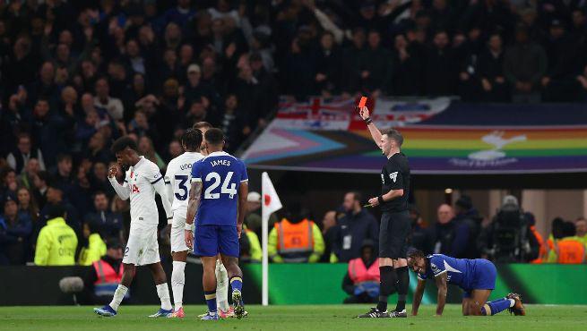 比賽第62分鐘,孫興慜和呂迪格發(fā)生對抗,隨后用腳踢到了呂迪格,被當值主裁判安東尼·泰勒紅牌罰下。在紅牌出現(xiàn)后,場邊的熱刺球迷不斷對呂迪格進行種族歧視,場邊廣播三次警告球迷但無濟于事。隨后,還有球迷向切爾西門將凱帕投擲雜物導致比賽中斷,但最終比賽在混亂中結束。