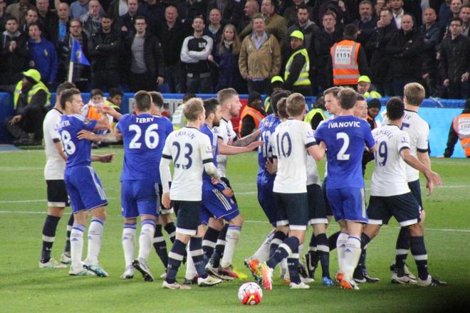 比賽過程中,熱刺共有9人染黃,切爾西有3人染黃,而雙方在球場上的犯規(guī)可以說是難以計數(shù),最后時刻雙方的大規(guī)模沖突,至今仍然是倫敦德比中最激烈的畫面。值得一提的是,這場比賽切爾西主帥希丁克還被打倒在地,熱刺球員丹尼·羅斯還和切爾西球員威廉多次頂牛。