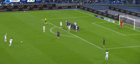 第24分鐘,尼科-帕斯任意球直接射門,悶倒波利塔諾